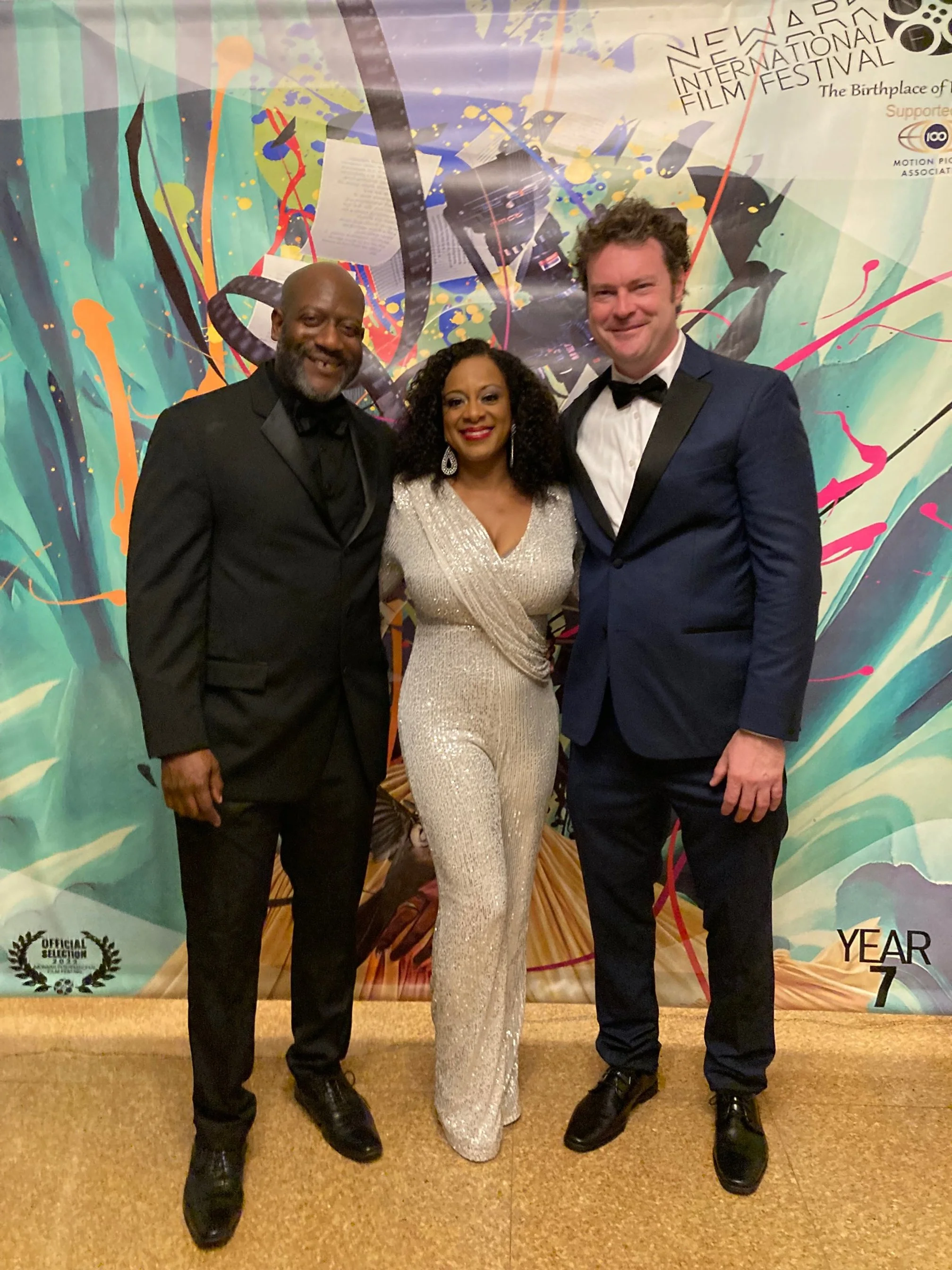 Wesli Spencer, Bruce Gorman, Jr., and Richard Bird pose with awards at the Ocktober Film Festival Award Ceremony in October 2017, where Thurman Comes Home won Best Director and Best Short Film.